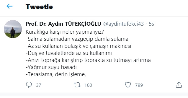 Bu gelişmeler yaşanırken, Artvin Çoruh Üniversitesi, Orman Fakültesi, Orman Mühendisliği Bölümü, Toprak İlmi ve Ekoloji Ana Bilim Dalı öğretim üyesi Prof. Dr. Aydın Tüfekçioğlu'nun 12 Aralık'ta twitter hesabından yaptığı paylaşım, "kuraklık tehlikesi karşısında ne gibi çözüm tedbirleri alınabilir?" sorusunu akla getirdi. Tüfekçioğlu sosyal medya paylaşımında kuralık sorununa ilişkin bazı çözüm önerilerini sıraladı.
