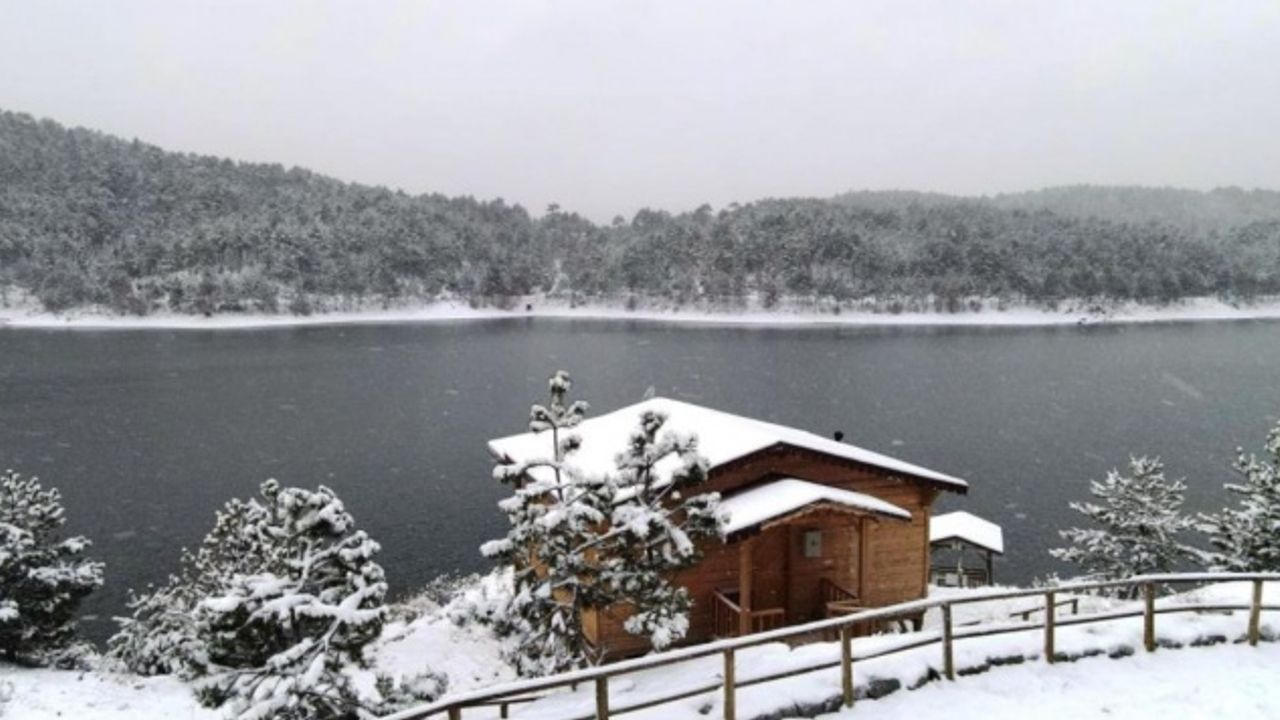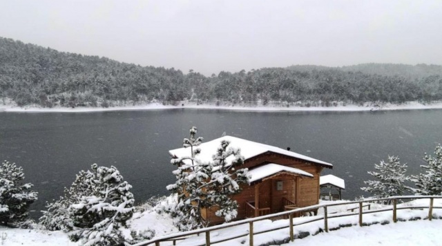 Kar yağışının durması ile birlikte Tahtalı Göleti kartpostallık manzaralar oluştu.