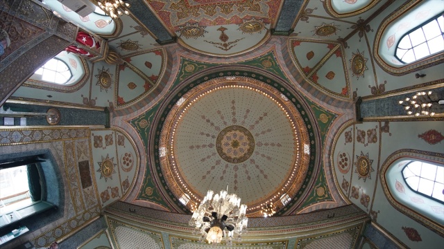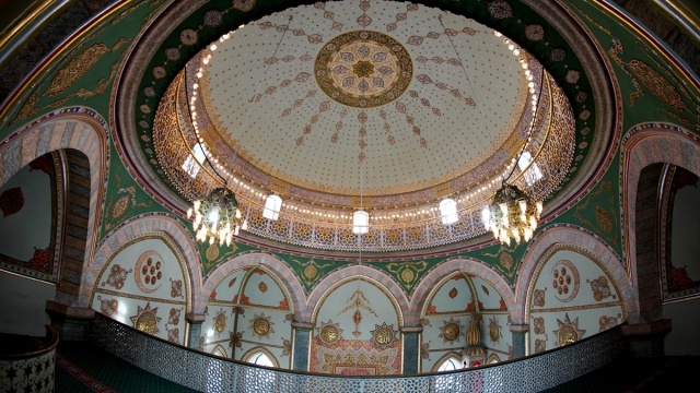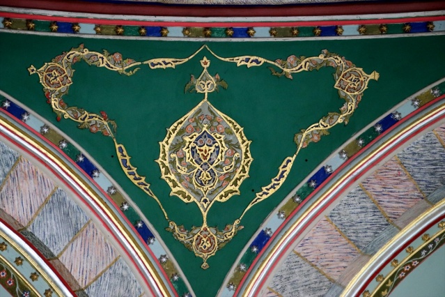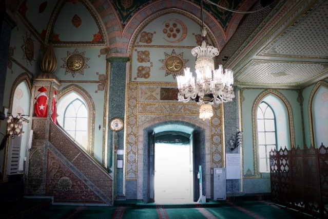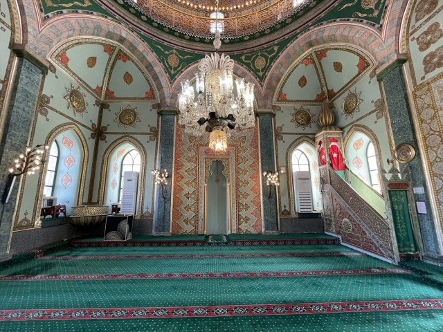 Kütahya'da Osmanlı'nın son döneminden kalma tarihi Yeşil Cami, adını aldığı yeşil ve altın sarısı iç süslemeleriyle dikkati çekiyor.