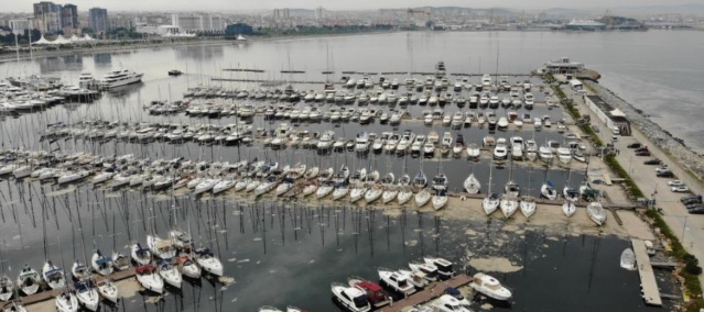 Pendik Marinada da deniz yüzeyini deniz salyaları kapladı.