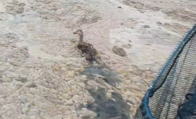 Öte yandan Gemlik Körfezi'ni kaplayan salyalar lodos sebebiyle buradan dağılıp Küçükkumla, Narlı gibi tatil köylerini vurdu. Narlı'da karnını doyurmak için denizde avlanmaya çalışan ördekler de salyaların esiri oldu. Ördeklerin zor durumda olduğunu gören bir vatandaş teknesiyle açılıp ördekleri tek tek yakaladı ve sahile çıkardı.