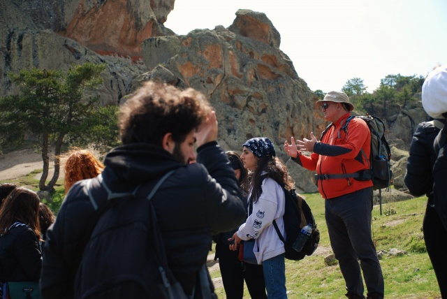 Geziye katılan asistanlar, fotoğraf makinelerinin kullanımında öğrencilere yardım ederken, kafileye eşlik eden Prof. Dr. Hakan Sivas da Frig uygarlığı hakkında tarihi bilgilerini aktararak, katılımcı öğrenci ve öğretim üyelerine rehberlikte bulundu.