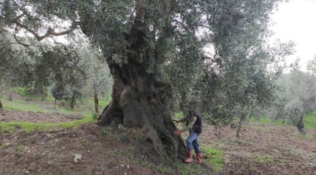 Sezonda 500 kiloya yakın zeytinin toplandığı büyük bir gövdeye sahip olan zeytin ağacına ilgi günden güne artıyor.