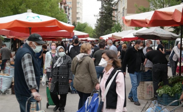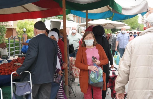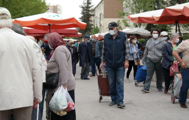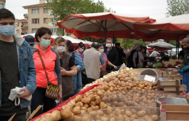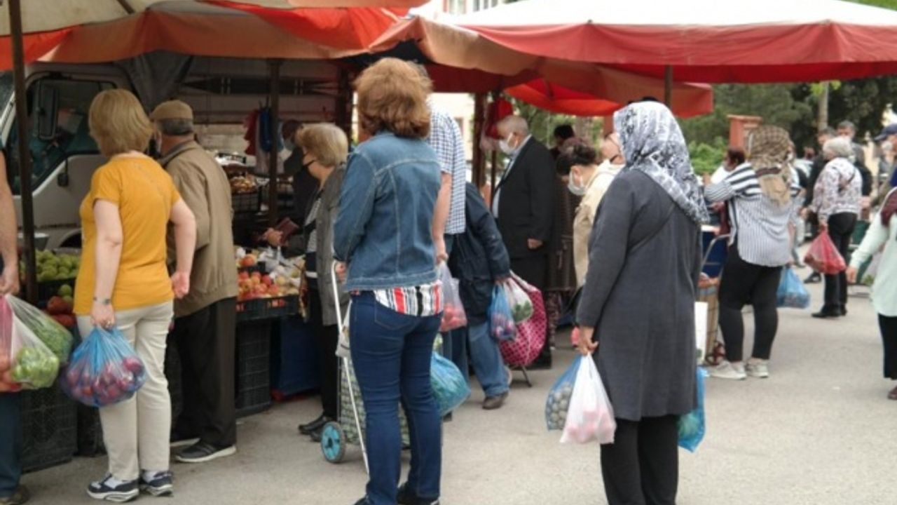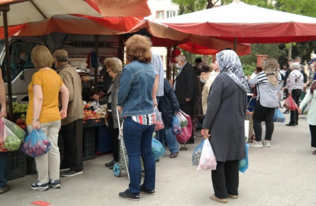 İçişleri Bakanlığının yayınladığı genelge ile kurulmasına izin verilen pazarlara gelen vatandaşlar tezgâhlar önünde yoğunluk oluşturdu.