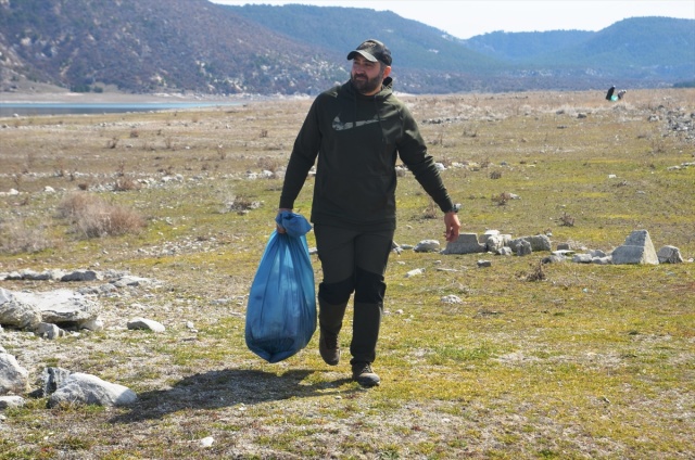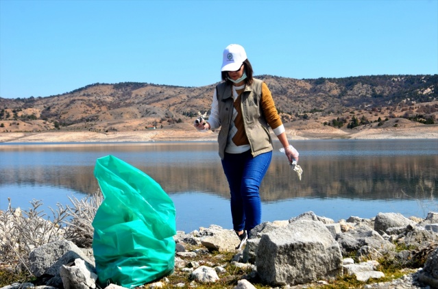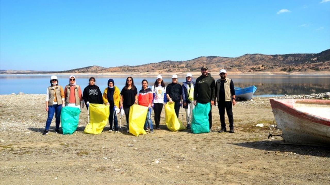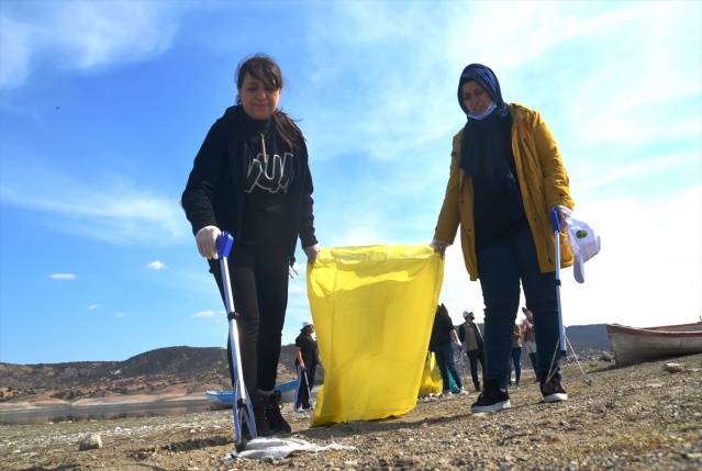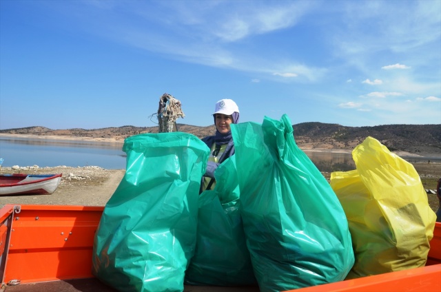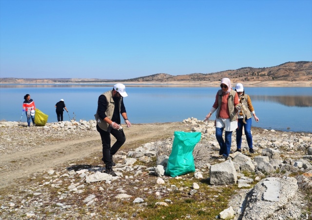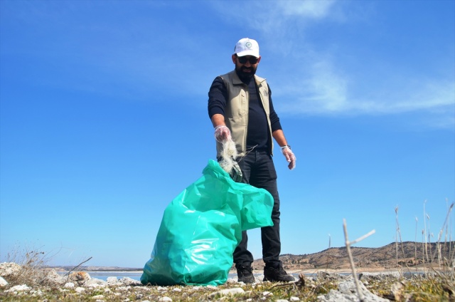 Kütahya'da bir grup gönüllü öğretmen, göçmen kuşların uğrak yerlerinden Porsuk Barajı kıyısında çevre temizliği yaptı.
