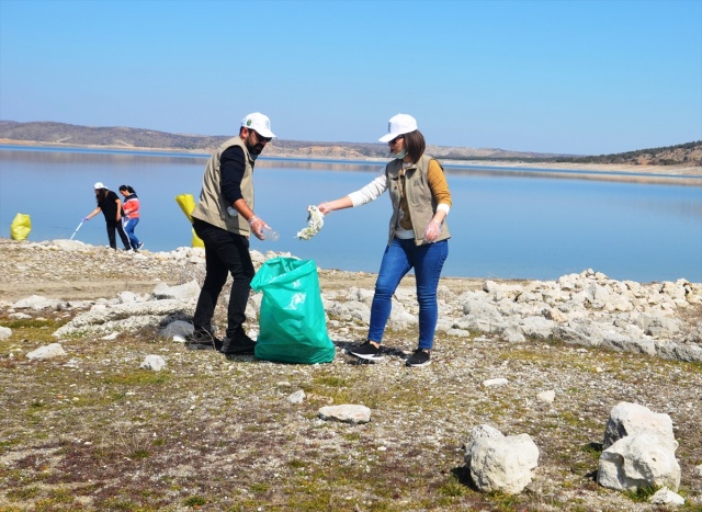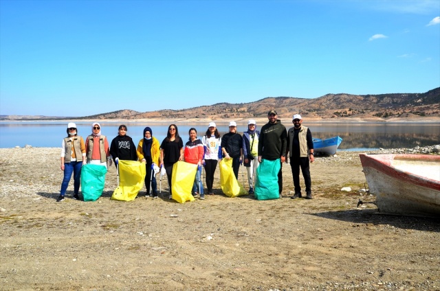 Kentteki özel bir eğitim merkezinde görev yapan öğretmenler, kurumun organizasyonuyla Kütahya-Eskişehir yolu yakınındaki baraj kıyısında çöpleri topladı.