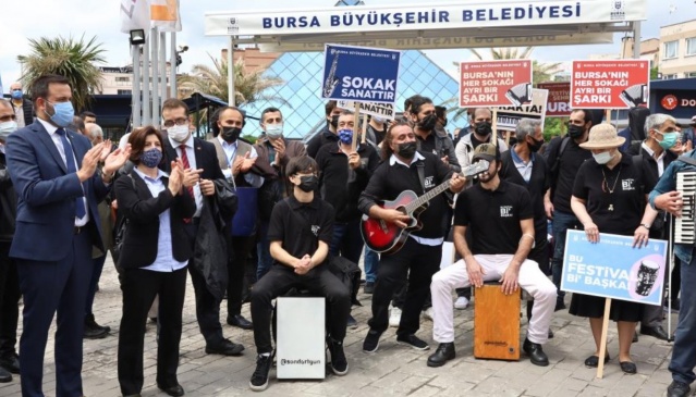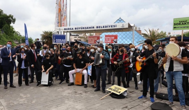 Geçimini sokak müzisyenliği ile sağlayan, kentin farklı cadde ve sokaklarında sağlıksız ortamlarda sanatlarını icra ederken zaman zaman bölge esnafından da tepki alan sokak müzisyenleri, Büyükşehir Belediyesi’nin, “Bursa'nın her sokağı ayrı bir şarkı” projesiyle sağlıklı ortamlarda sanatlarını icra etme imkanına kavuşmuştu.