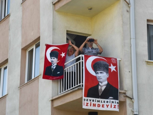 Kent genelinde binalar, bayraklar ve Mustafa Kemal Atatürk’ün posterleri ile
