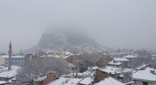 Afyonkarahisar’da sabah erken saatlerde başlayan kar yağışı kenti beyaza bürüdü.