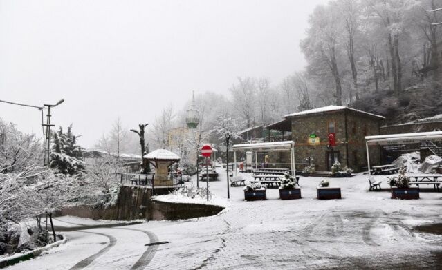 Bursa'nın İznik ilçesinde kar yağışı yüksek kesimlerde etkisini sürdürüyor.