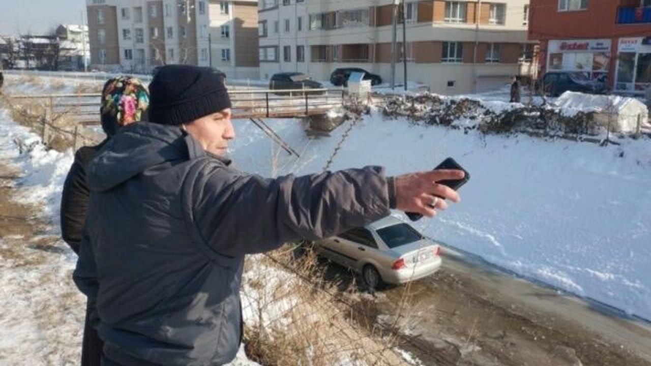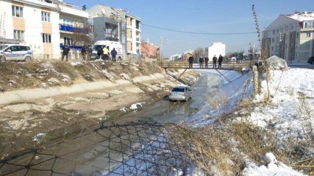 Yavaş giderken buzlanma nedeniyle aracın kaydığını belirten Yenilmez, “Yavaş giderken araba birden kayıverdi. Ben aracı kontrol etmeye çalışırken eşim el frenini çekmiş. Arabayı ancak toparlayabildik ve devrilmeden kayıp kanala düştü.