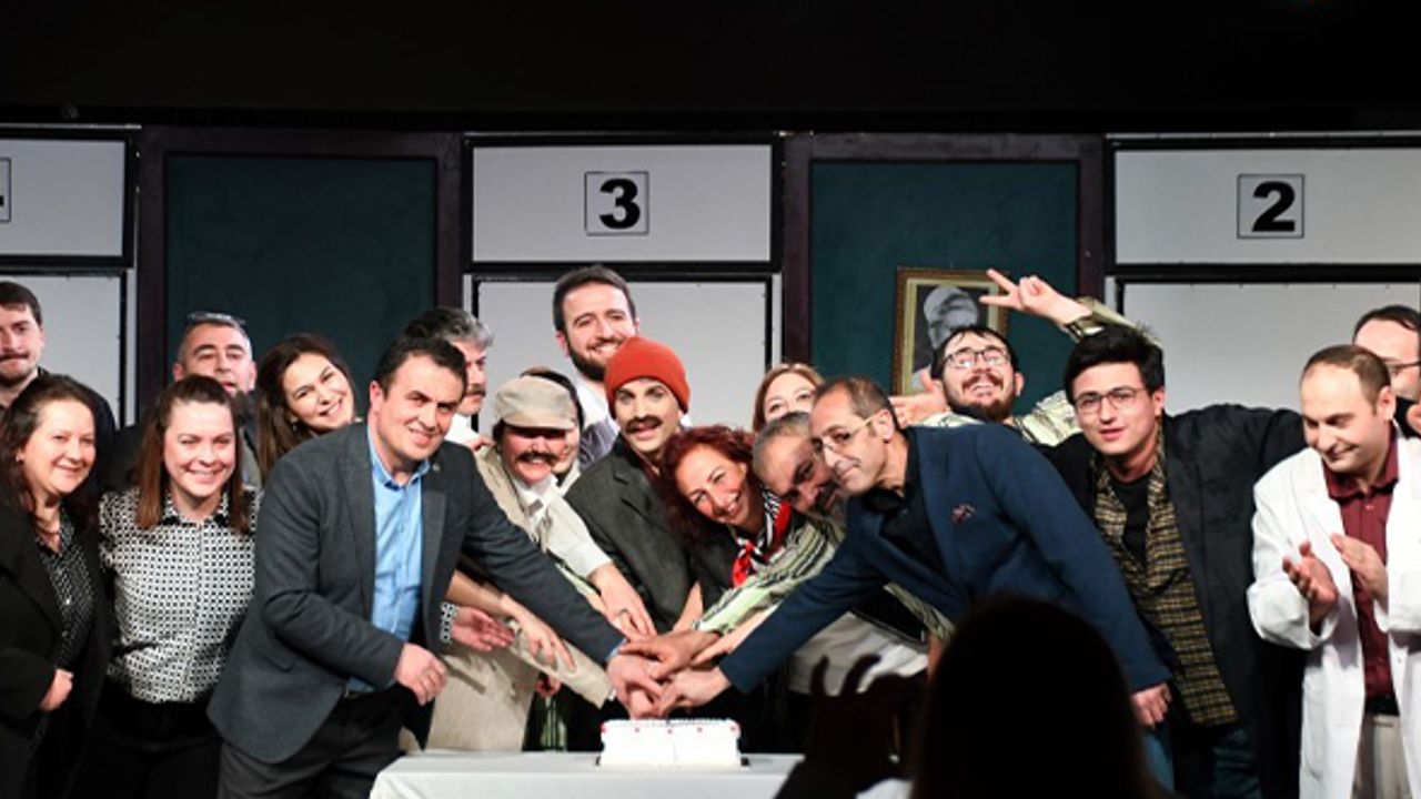 Pazar akşamı oynanan Deliler Evi oyunu sonrası, Dünya Tiyatro Günü nedeniyle pasta kesimi yapıldı.