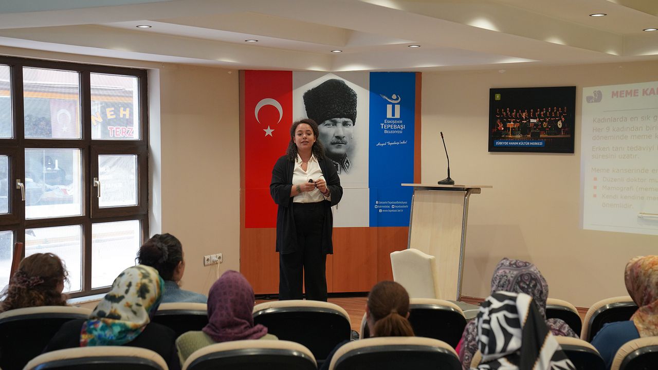 Tepebaşı Belediyesi, kent sakini kadınlara yönelik eğitim faaliyetlerine aralıksız devam ediyor. Bu doğrultuda Sağlık İşleri Müdürlüğü, Türkiye Aile Sağlığı ve Planlaması Vakfı (TAPV) iş birliği ile Tunalı Belde Evi kursiyerlerine ‘Kadın Sağlığı Semineri’ gerçekleştirildi. Seminerlerde toplamda 250 kadına ulaşıldı.