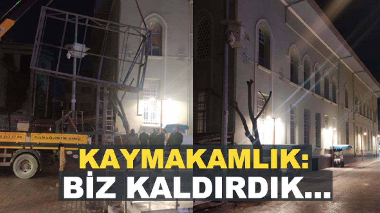 Odunpazarı Kaymakamlığı'ndan yapılan açıklamada, "İlçemize bağlı Hamamyolu Caddesi'ndeki Tarihi Çarşı Camiinin siluetini bozan ve Emniyet Müdürlüğümüzün Mobese kameralarının görüş açısını engelleyen, ayrıca ilgili mevzuata aykırı şekilde konulan reklam tabelası Kaymakamlığımızca söktürülmüştür. Kamuoyuna saygıyla duyurulur" denildi.