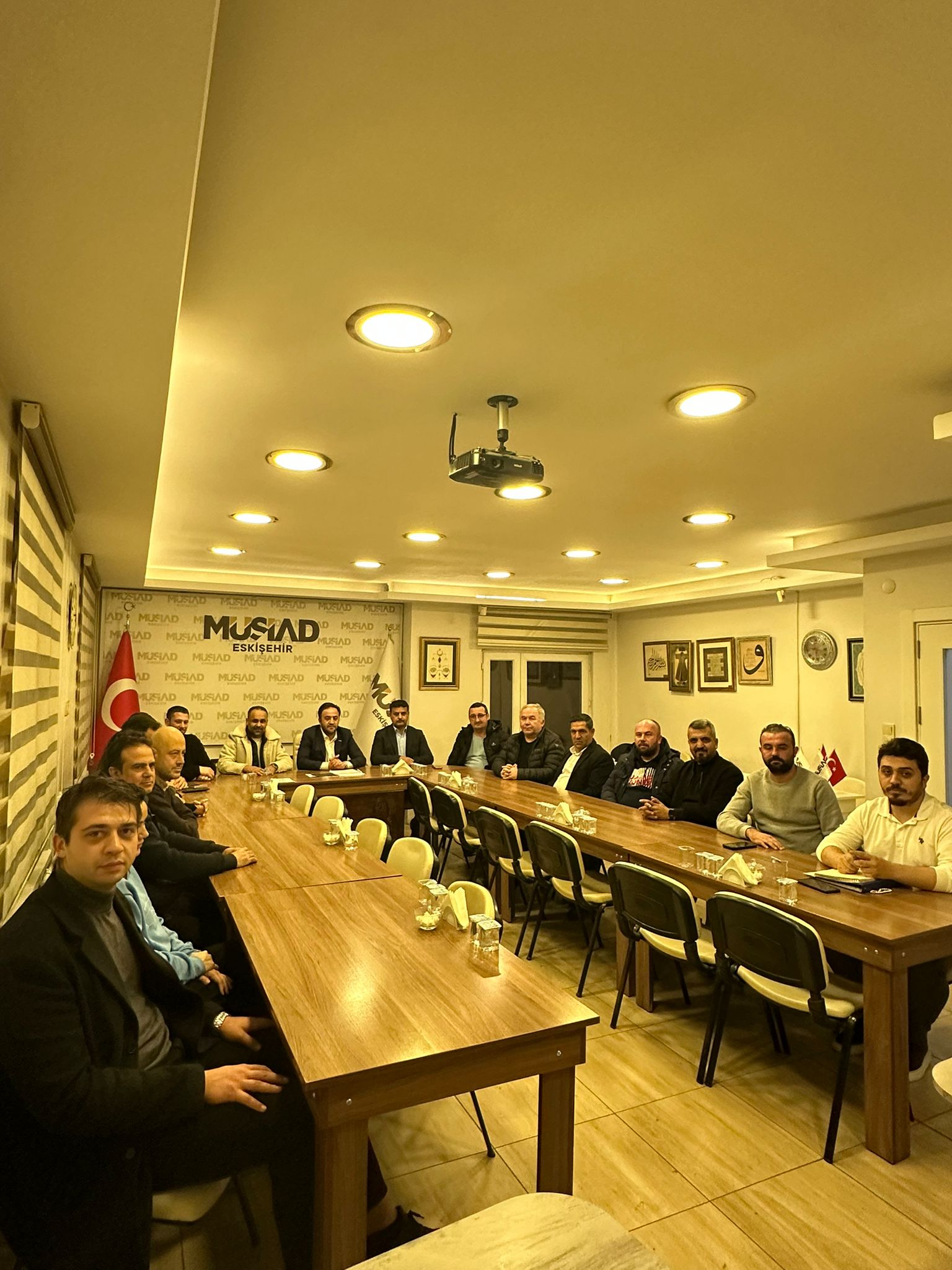 Müstakil Sanayici ve İşadamları Derneği (MÜSİAD) Eskişehir Şubesi, Şube Başkanı Av. Oğuz Özdemir başkanlığında Haftalık Yönetim Kurulu Toplantısını, MÜSİAD Eskişehir Şubesi Dernek Binasında gerçekleştirdi. Toplantıda gündem ile ilgili konular görüşüldü. Yapılan ve Yapılacak olan faaliyetler hakkında görüş alışverişi ve istişareler yapıldı. Toplantıya Şube Başkanı Av. Oğuz Özdemir, Başkan Yardımcısı Aziz Karagöz Yönetim Kurulu Üyeleri Gökhan Yıldırım, Hakan Şahlan, Seda Yokuş Batıbay, Av. Pınar Turhanoğlu Gücüyener, Abidin Gücüyener, Malik Kanık, Burak Atıcı, Tuncay Kuru, Şener Yaman, Mesut Demirhan, Oğuzhan Uzun, Anıl Yılmaz, Hasan Yılmaz, Ali Biricik ve Genç MÜSİAD Eskişehir Başkanı İsmail Hakkı Satır katıldı.