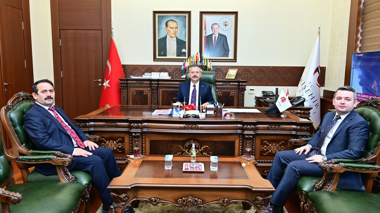 Eskişehir Valisi Hüseyin Aksoy, Günyüzü Kaymakamı Muhammed Raşit Kurt ve Günyüzü Belediye Başkanı Hidayet Özmen’i makamında kabul etti.