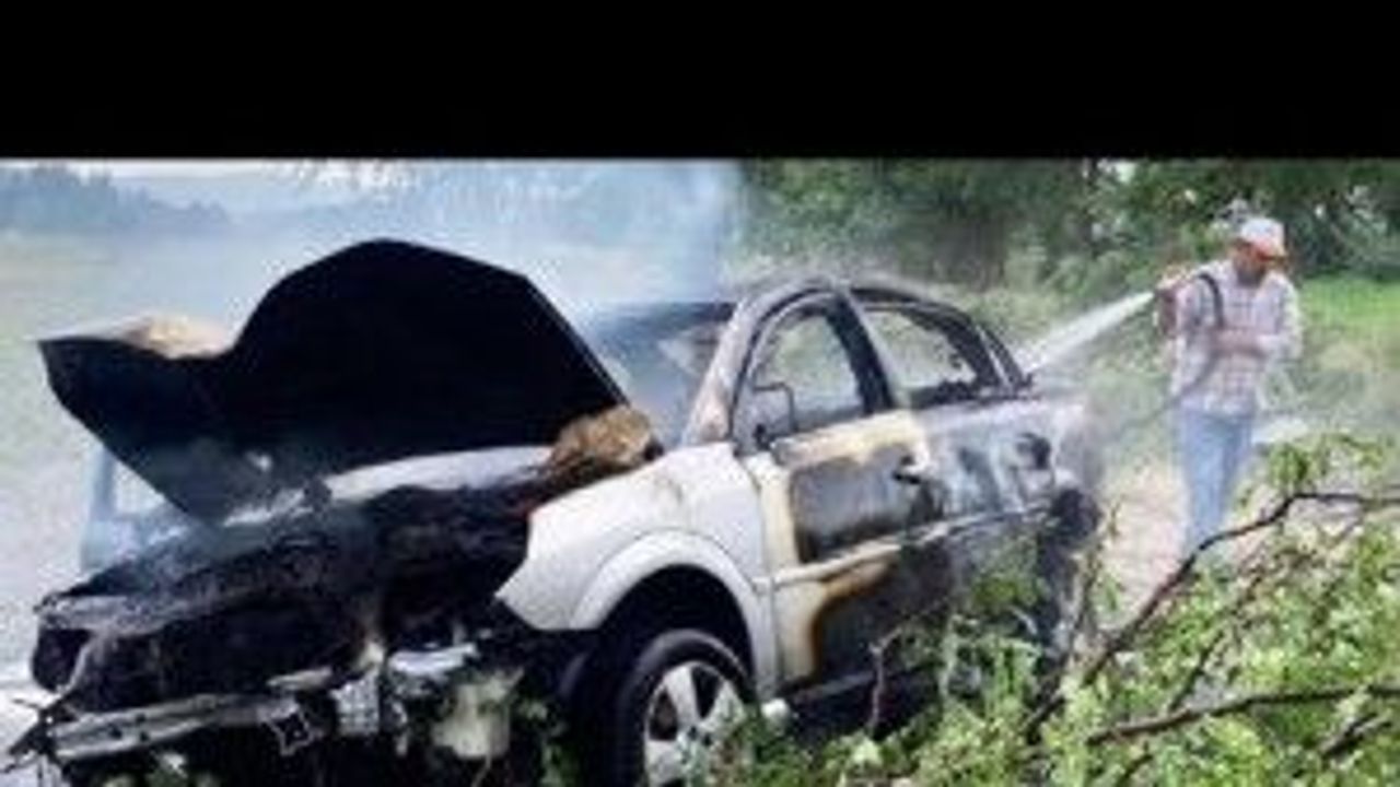 Afyonkarahisar-Ankara karayolundan kontrolden çıkarak şarampole yuvarlandıktan sonra alev topuna dönen otomobil sürücüsü son anda kurtarıldı.