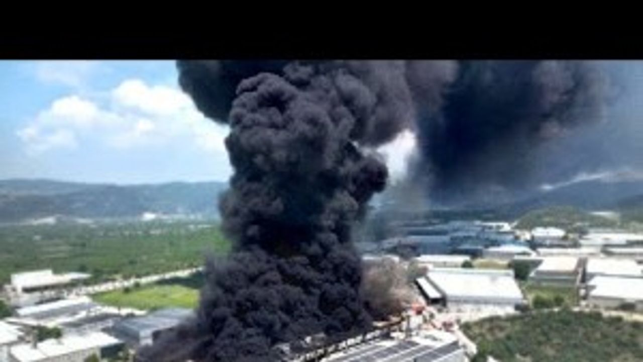 Bursa'daki fabrikada çıkan büyük yangın havadan görüntülendi...