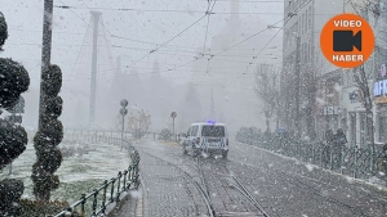Eskişehir’de öğleden sonra rüzgârla birlikte aniden bastıran yoğun kar yağışı, vatandaşlar arasında şaşkınlıkla karşılanırken, kent merkezinde ilginç görüntüler oluştu.
