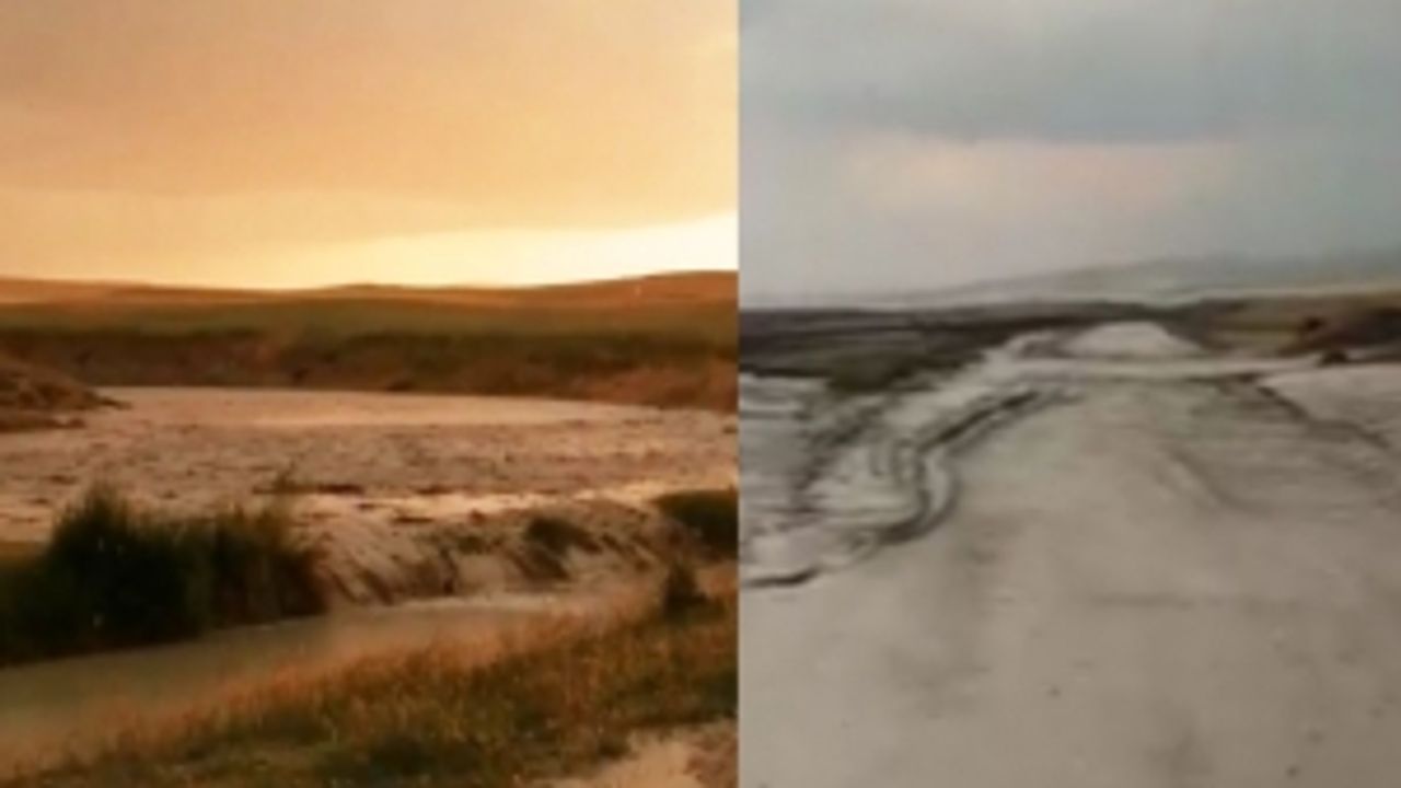 Eskişehir’in Günyüzü ilçesinde gelen sel görüntüsü çiftçilerin telefon kameralarına yansıdı.