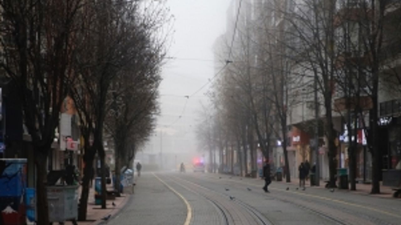 Eskişehir'de yoğun sis nedeniyle görüş mesafesi 50 metrenin altına düşüyor.
