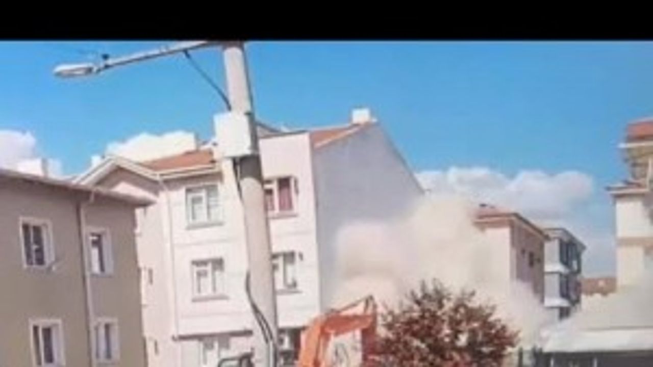 Eskişehir'deki binanın çökme anı böyle görüntülendi