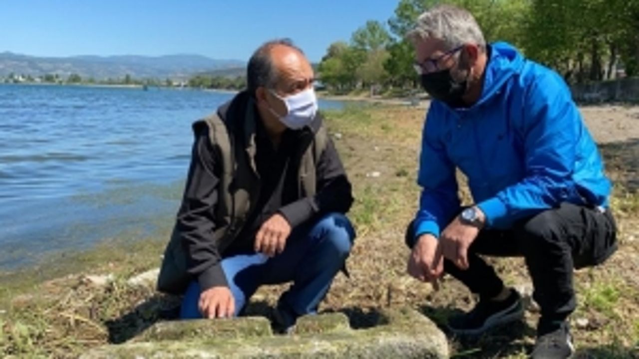 Bursa'nın İznik ilçesinde gölde balıkçılar tarafından bulunan üzeri desenli tarihi eseri İznik Müze Müdürü ve arkeologlar inceledi. Çıkan eserlerin gölün içinde bulunan önemli bir tarihi yapının olduğu iddia ediliyor.