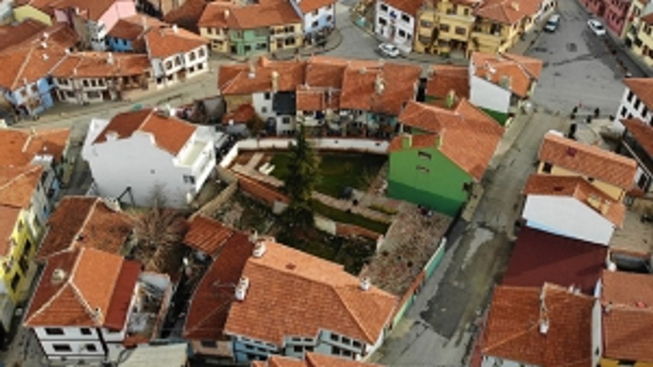Kısıtlamayla boş kalan tarihi evleriyle meşhur Odunpazarı, havadan görüntülendi.