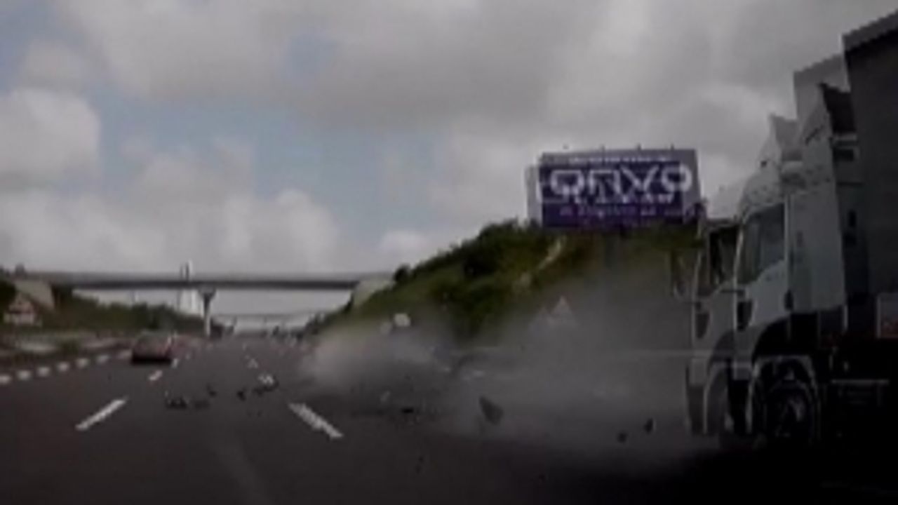 Otobanda korku dolu anlar! Makas attı, hurdaya döndü!