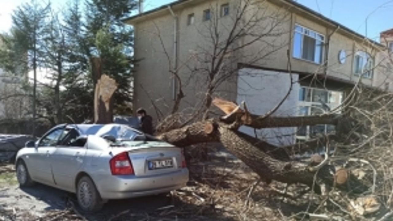 Eskişehir’de öğle saatlerinde başlayan ve şiddeti 89 kilometreye kadar ulaşan şiddetli rüzgâr sonucunda devrilen ağaç park halindeki otomobilin üzerine düşerek maddi hasara neden oldu.